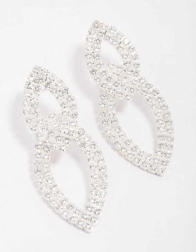 Silver Cubic Zirconia Double Circle Diamante Drop Earrings