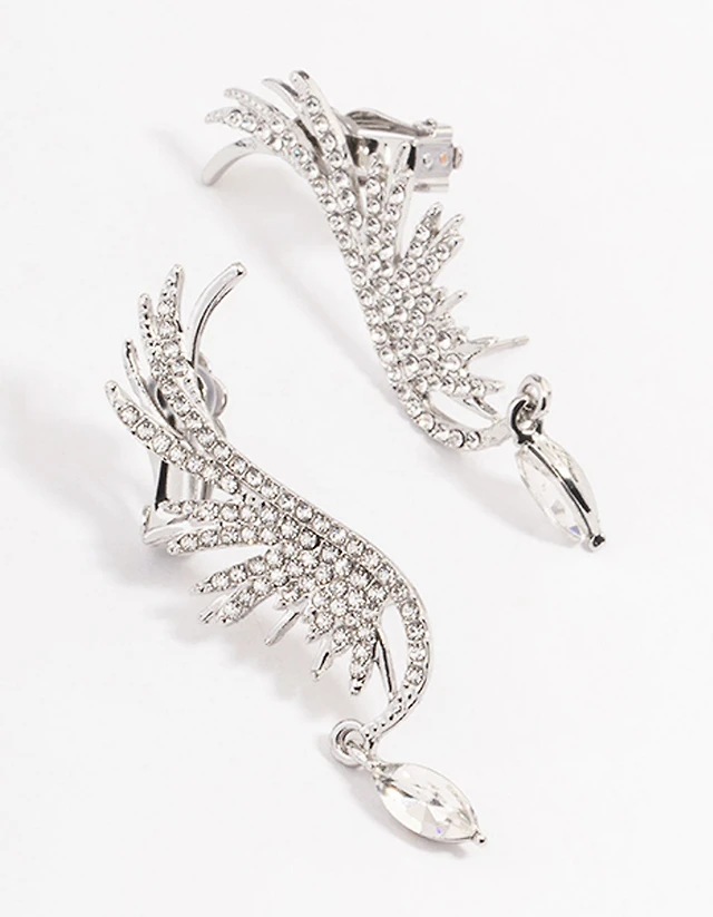 Silver Butterfly Cubic Zirconia Drop Earrings