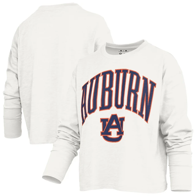 Women's Pressbox White Texas Longhorns Janise Arch Over Logo Waist Length Oversized Pullover Sweatshirt