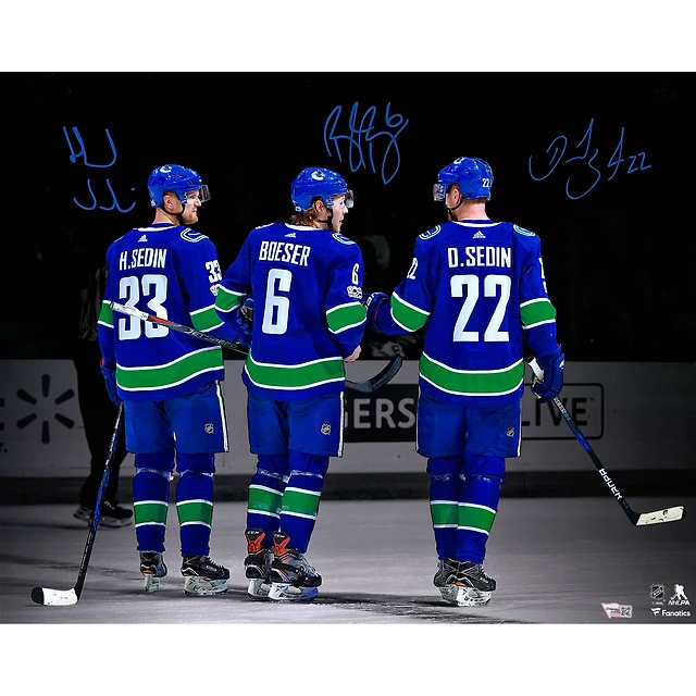 Daniel Sedin and Henrik Sedin Vancouver Canucks Framed Autographed 16" x 20" Throwback Jersey Spotlight Photograph