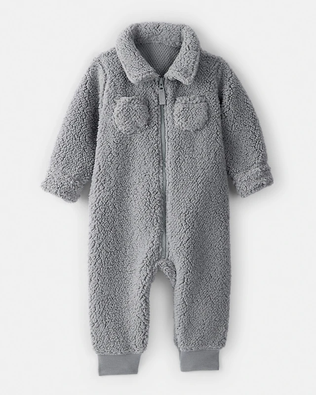 Baby Boy Sherpa Pocket Zip-Up Jumpsuit - Grey