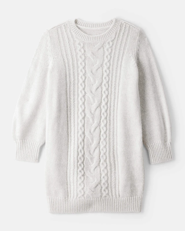 Girls Cable Knit Long-Sleeve Dress - Ivory