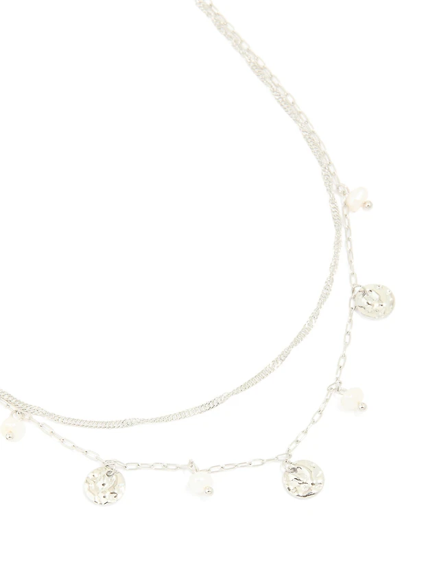 Waterproof Stainless Steel Pearl & Molten Pendant Chain Layered Necklace