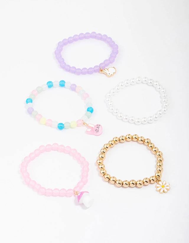 Kids Easter Bunny Flower Stretch Beaded Bracelets 5-Pack