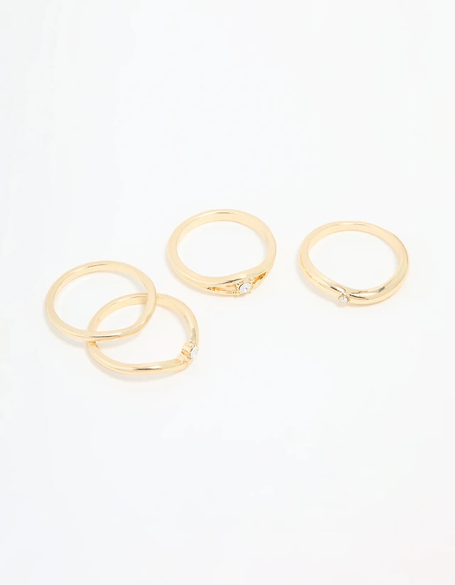 Gold Plated Cubic Zirconia Mixed Detail Rings 5-Pack