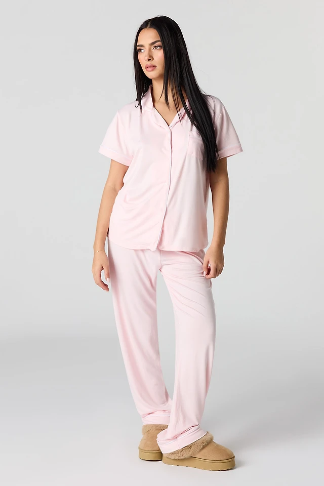 Ribbed Lace Trim Tank & Pant Pajama Set