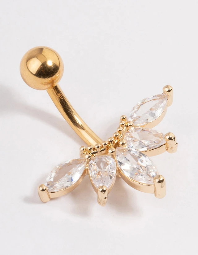 Gold Plated Surgical Steel Cubic Zirconia Marquise Fan Belly Ring