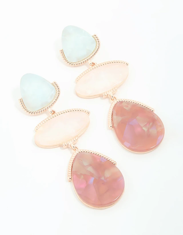 Gold Red Mesh Flower Cup Chain Drop Earrings