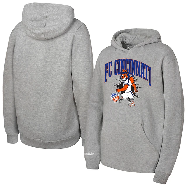 Youth Mitchell & Ness Heather Gray FC Cincinnati Mascot Break Out Pullover Hoodie