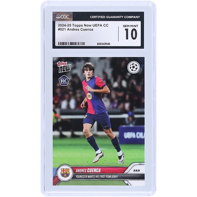 Andrés Cuenca Barcelona 2024-25 Topps Now UEFA Youngster Makes His First Team Debut #21 CGC Authenticated 10 Rookie Card