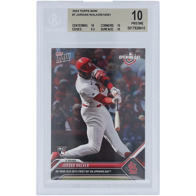 Jordan Walker St. Louis Cardinals 2023 Topps Now First Hit on Opening Day 03.30.23 #7 BGS Authenticated 10 Card - 10,10,9.5,10 Subgrades