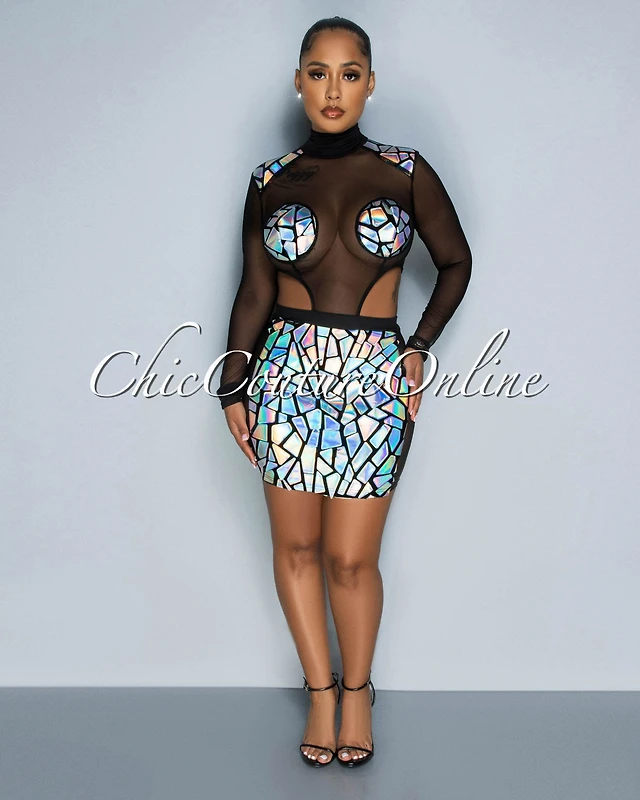 *Marion Black Cut-Out Ruched Bodice Mini Dress