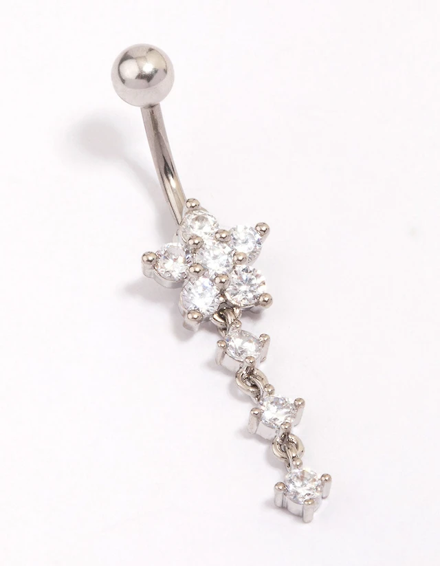 Surgical Steel Cubic Zirconia Flower Drop Belly Ring