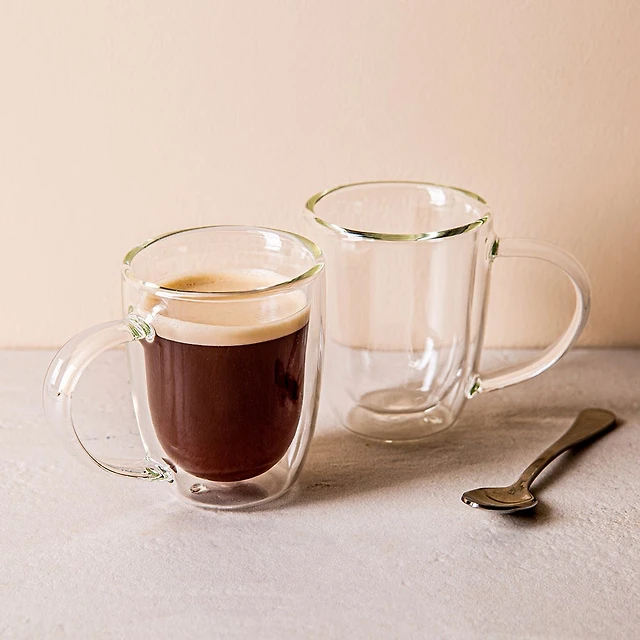 KSP Milano Double Wall Cappuccino Glass with Handle - 270 ml, Set of 2