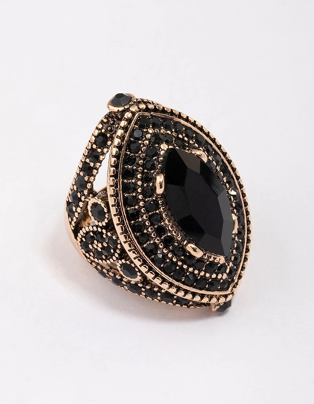 Gold & Black Grand Marquise Stone Statement Ring