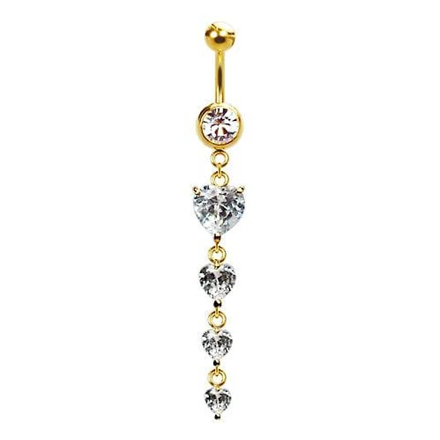 316L Surgical Steel Gold PVD 4 Heart CZ Gem Dangle Belly Ring
