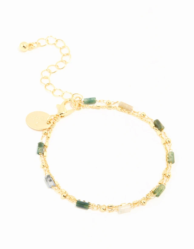Gold Plated Green Semi Precious Stone Layered Chain Bracelet