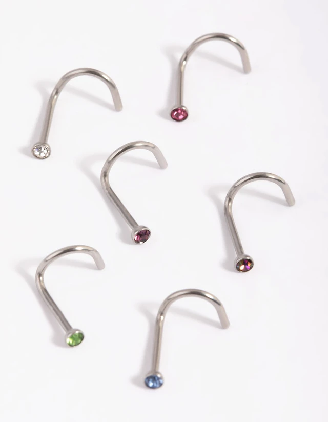 Gold Plated Titanium Threadless Flower Triangular Nose Studs 3-Pack