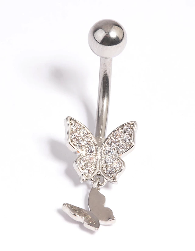 Surgical Steel Butterfly Cubic Zirconia Drop Belly Bar