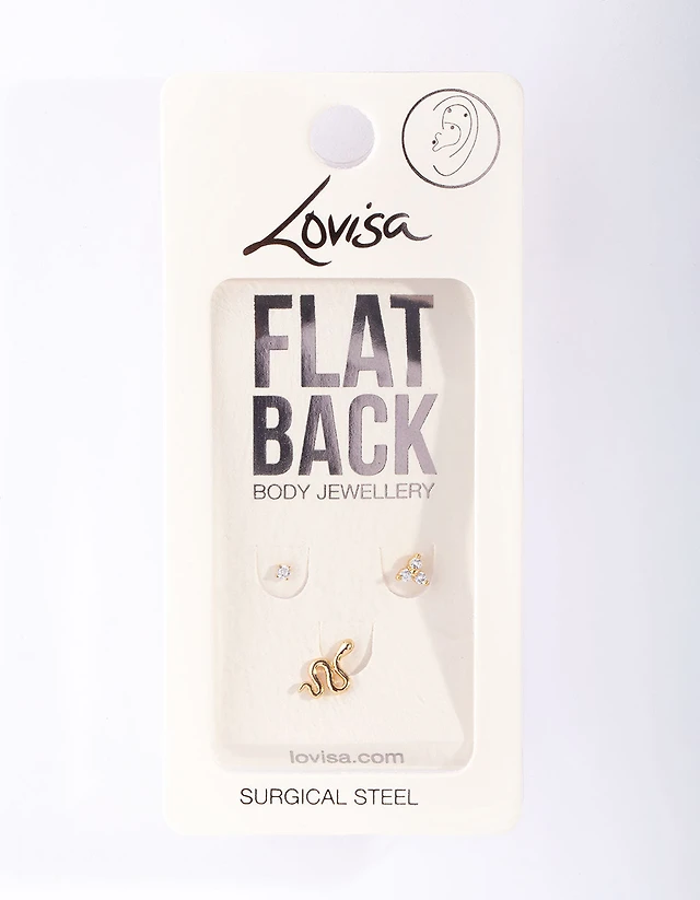 Gold Surgical Steel Snake Flat Back Pack