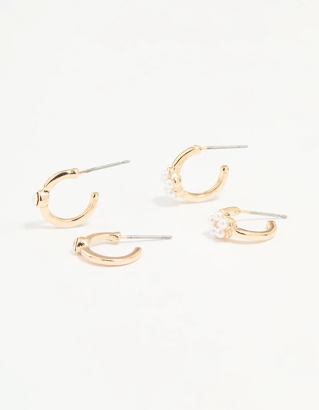 Waterproof Gold Plated Stainless Steel Pearl Detail Huggie Earrings 2-Pack