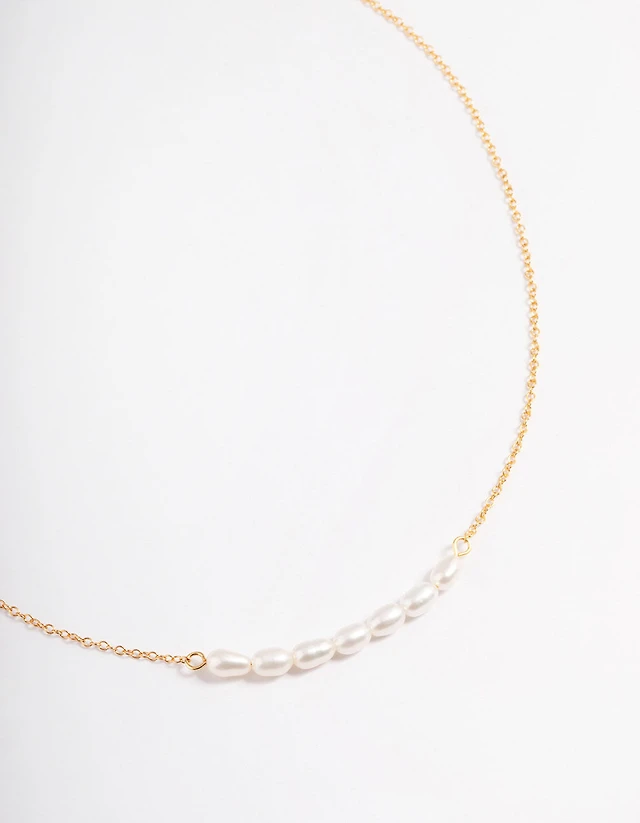 Gold Plated Sterling Silver Freshwater Pearl Row Choker