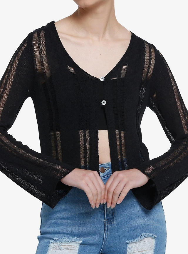 3/4 Sleeve Sequin Edge Trim Cardigan