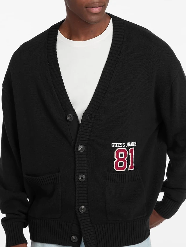 Abner Ivory Navy-Blue Trim Sweater Cardigan