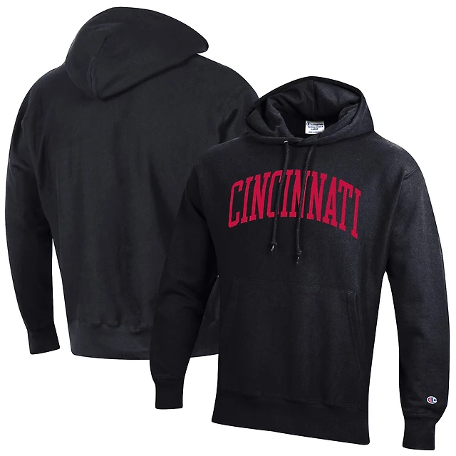Men's Champion Black Cincinnati Bearcats Team Arch Reverse Weave Relaxed Fit Pullover Hoodie