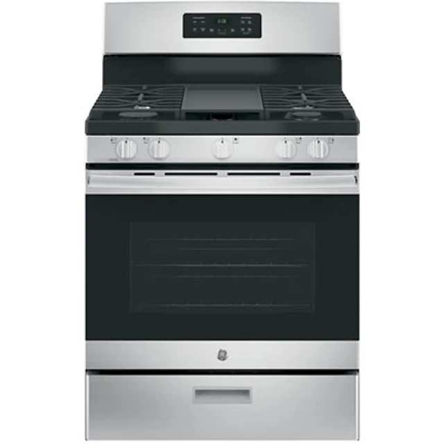 GE 30" 5.0 Cu. Ft. Fan Convection 5-Burner Freestanding Gas Air Fry Range (JCGB735SPSS) - Stainless