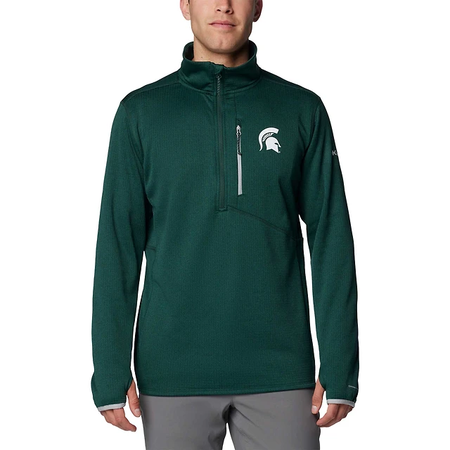 Men's Columbia Green Michigan State Spartans Park View Grid Fleece Omni-Wick Half-Zip Jacket