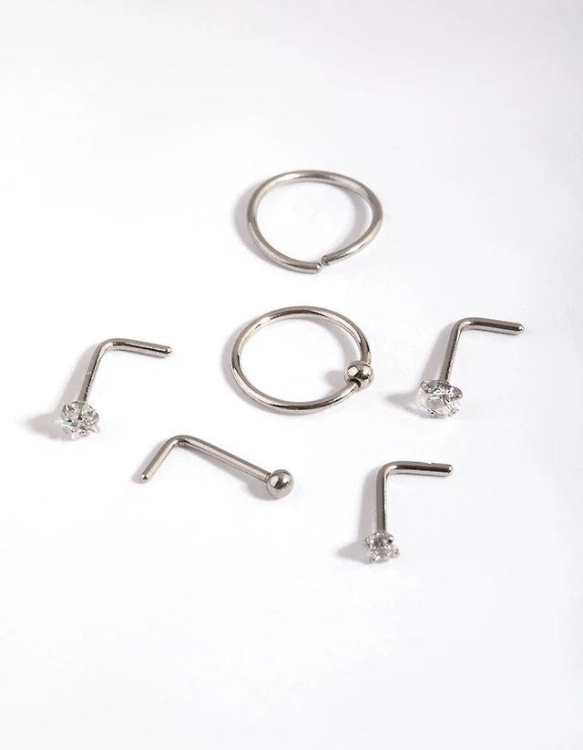 Surgical Steel Diamante Mixed Nose Ring 6-Pack