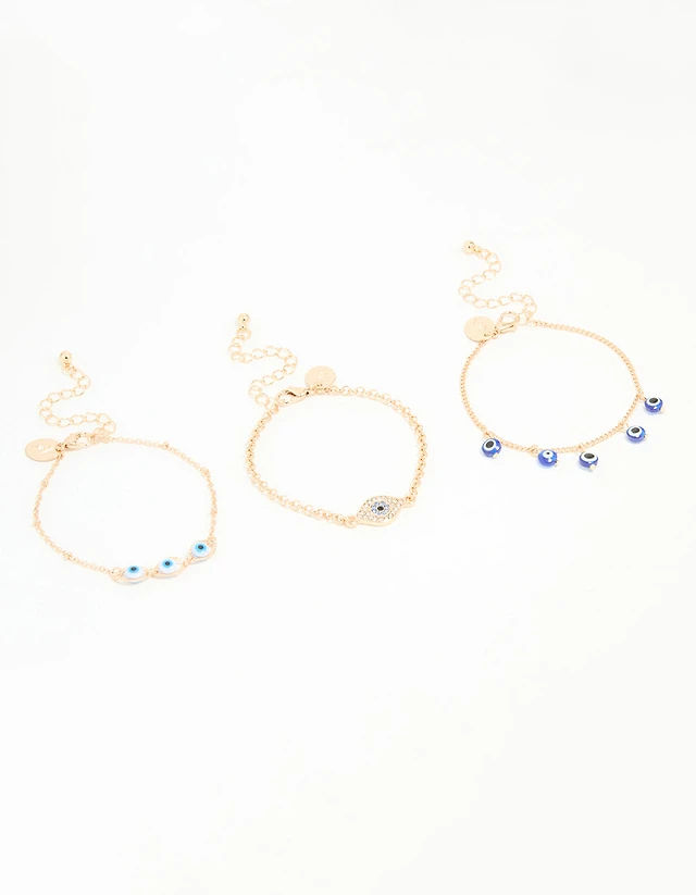 Gold Evil Eye Bracelets 3-Pack