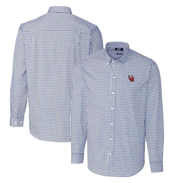 Men's Cutter & Buck Bobby Bowden Charcoal Florida State Seminoles Big Tall Epic Easy Care Gingham Long Sleeve Button-Down Shirt