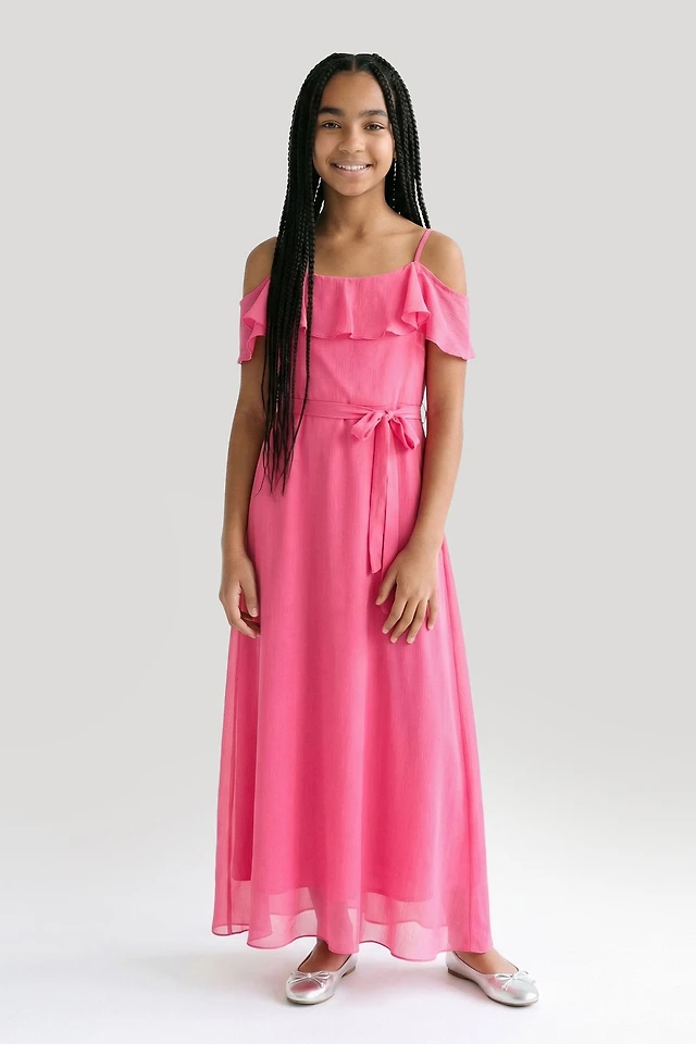 Girls Floral Cross Back Ruffle V-Waist Dress