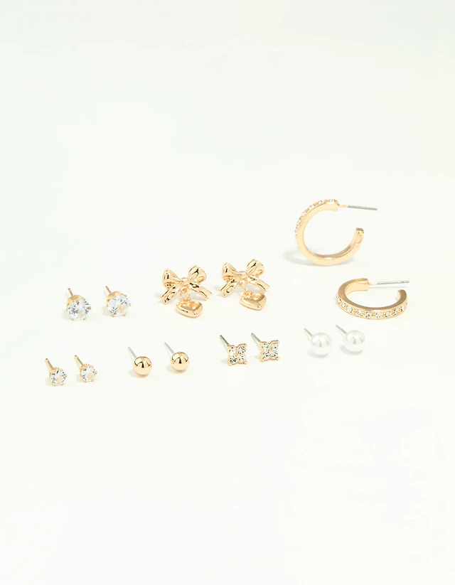 Gold Pearl Bow & Heart Earrings 3-Pack