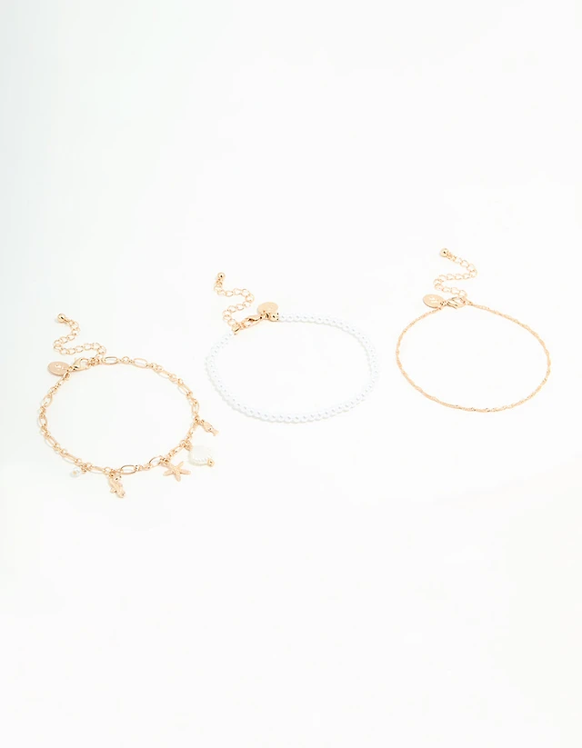 Gold Cowry Shell & Dainty Anklets 3-Pack
