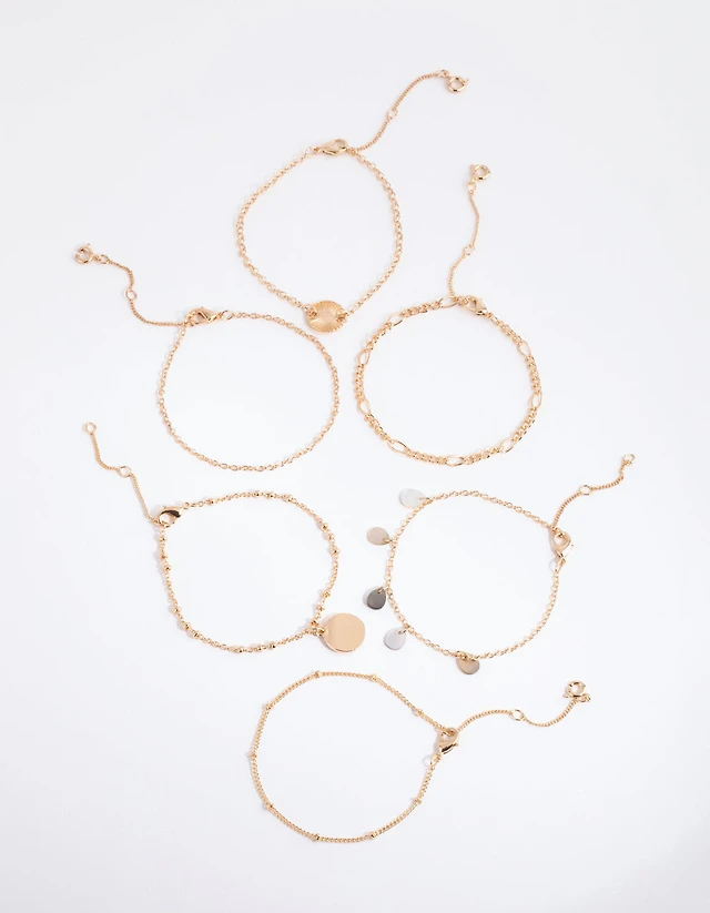 Gold Evil Eye & Coin Chain Anklets 3-Pack
