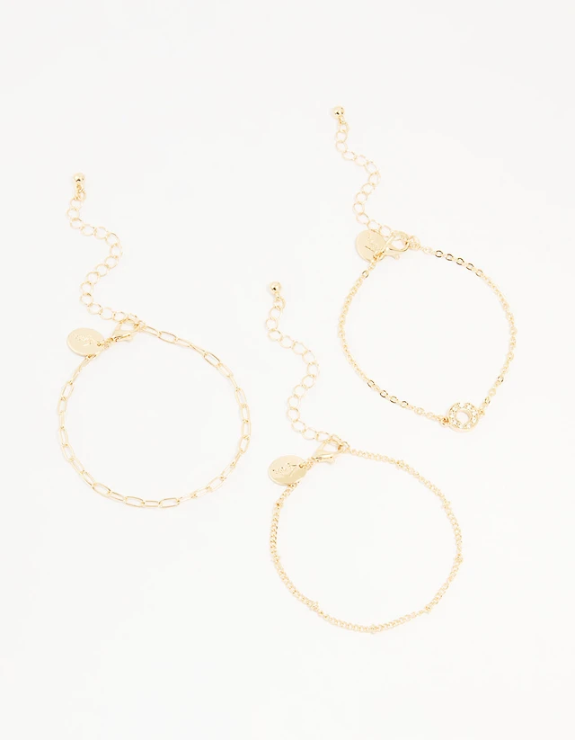 Gold Diamante Infinity Circle Bracelets 3-Pack
