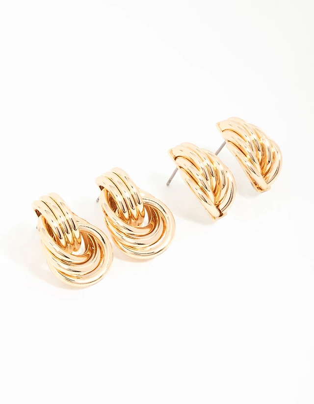 Gold Braided Mixed Size Hoop Earrings 2-Pack