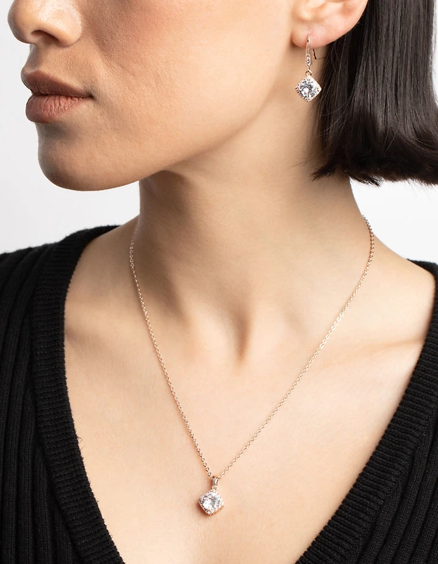 Gold Diamante Chain Drop & Stud Earrings 2-Pack