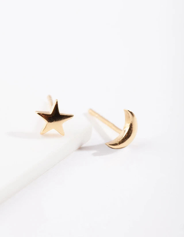 Gold Plated Sterling Silver Celestial Mismatch Earrings