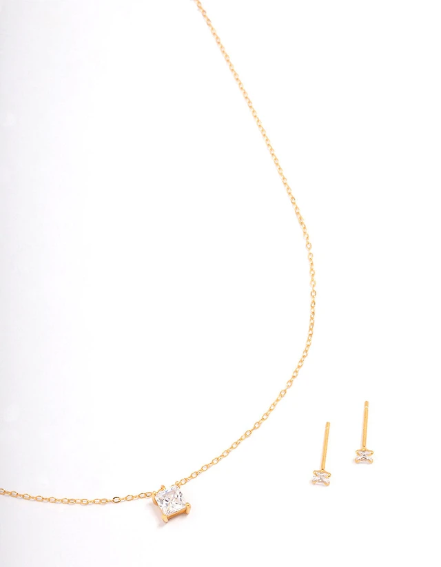 Gold Plated Sterling Silver Cubic Zirconia Stud Pack
