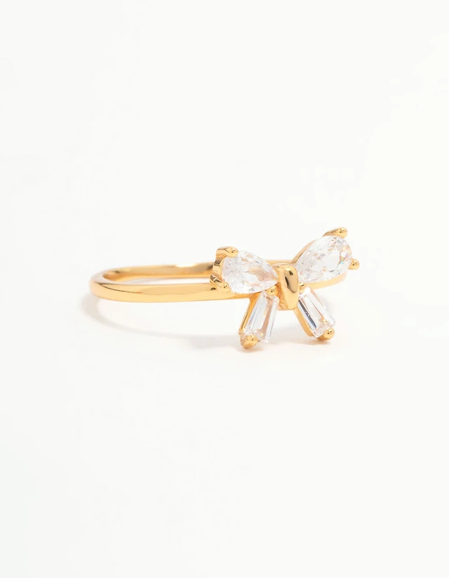 Gold Plated Sterling Silver Cubic Zirconia Bow Ring
