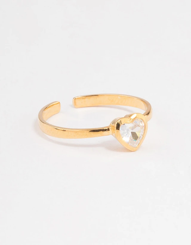 Gold Plated Sterling Silver Heart Cubic Zirconia Ring