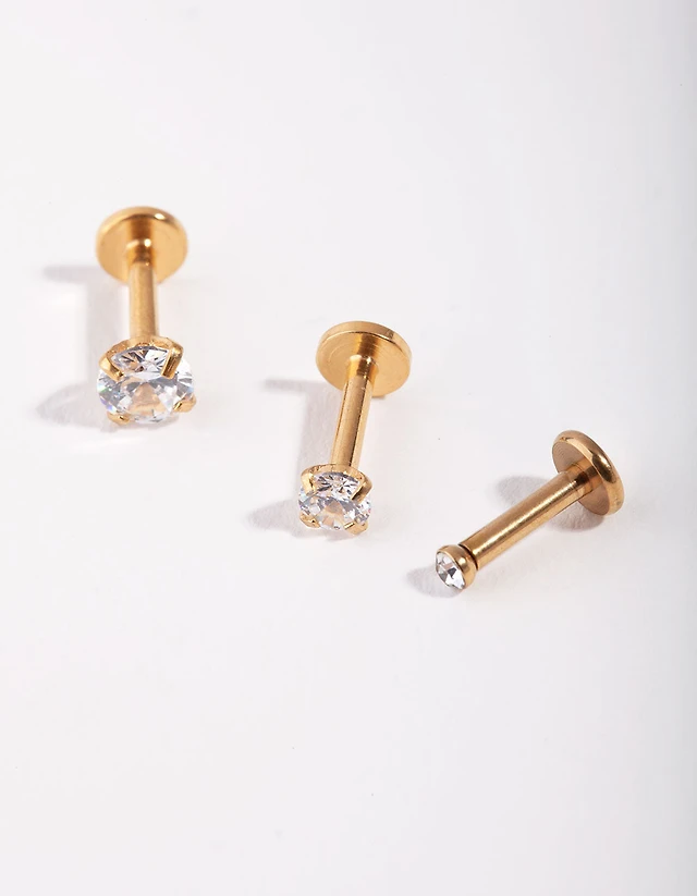 Surgical Steel Gold Grad Cubic Zirconia Flat Back Pack