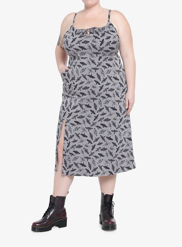 Moths Allover Print Midi Dress Plus Size