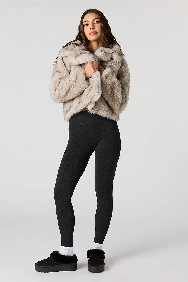Faux Fur-Lined No-Close Fleece Cardigan
