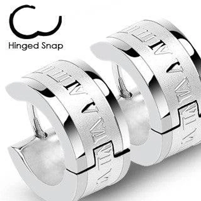 Pair of Thick Stainless Steel Roman Numerals Earrings Hinged Hoops