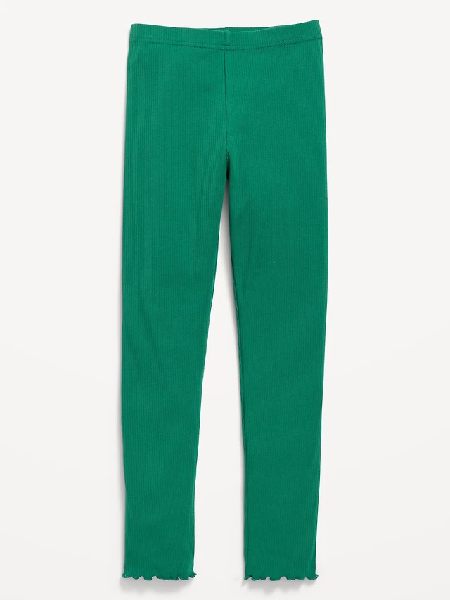 High-Waisted Lettuce Edge Rib-Knit Leggings for Girls